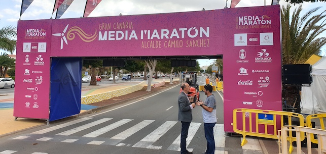 Unos 50 operarios están trabajando desde el jueves en el montaje de las instalaciones, tanto la infraestructura de la salida y la meta en la Avenida de Las Tirajanas frente a la Karpa, como la zona de frío y masaje que tendrán los corredores de la Media Maratón el domingo en el pabellón de deportes municipal.