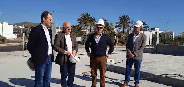 El futuro Recinto Ferial de Agüimes, ubicado en el Cruce Arinaga, abrirá sus puertas en el segundo semestre de este año, de acuerdo al compromiso adquirido por las empresas constructoras tras la visita a las obras realizada este jueves por el presidente del Cabildo de Gran Canaria, Antonio Morales, y el alcalde de Agüimes, Óscar Hernández. Cabildo insular y Ayuntamiento son dos de las administraciones públicas, junto con el Gobierno del Estado, responsables de la financiación del proyecto, cuyo coste total ascenderá a 5,1 millones de euros.
