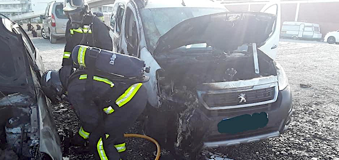 Los bomberos de San Bartolomé de Tirajana han apagado un incendio producido en tres coches estacionados junto a la carretera GC-500, a la altura de El Veril.