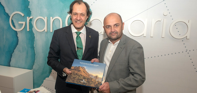 El consejero de Turismo del Cabildo de Gran Canaria, Carlos Álamo, ha recibido este martes, 15 de febrero, al comandante Alberto García Hevia en un acto de agradecimiento a la promoción turística que realiza este piloto de Iberia Express al difundir las bondades del territorio insular entre sus pasajeros.