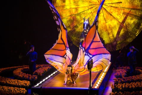 El caballo metálico hace su aparición junto a la mujer que corre, otra de las figuras claves del show que despliega sus alas de mariposa en tributo a la migración anual de la mariposa monarca desde el sur de Canadá hasta el centro de México, por su parte, Tenoc -el jaguar- se exhibe junto a el cenote, repleto de agua, para jugar bajo un juego de luces tenue y cuidado.