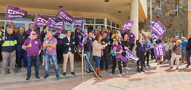 El alcalde, trabajadores y trabajadoras del Ayuntamiento de Santa Lucía, y concejales del grupo de gobierno y de la oposición se concentraron este viernes frente a las puertas de las oficinas municipales en Vecindario con motivo de la celebración el próximo domingo del Día Internacional de la Mujer. El sindicato Comisiones Obreras realizó esta convocatoria bajo el lema “Siempre es el tiempo de las mujeres”. Durante el acto se leyó un manifiesto reivindicativo en contra de la precariedad laboral de las mujeres, la discriminación laboral y la brecha salarial.