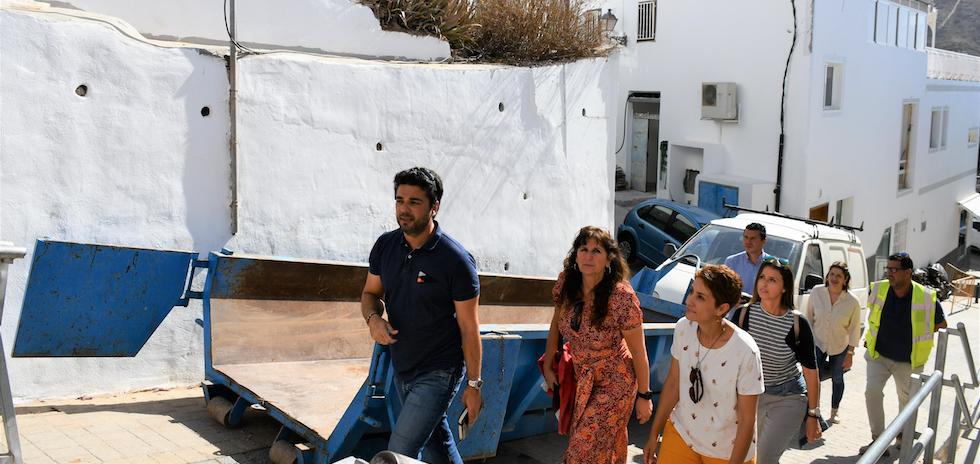 Después de la reunión de trabajo, la alcaldesa y la concejala de Servicios Sociales, Tania Alonso, visitaron junto a la consejera el barrio marinero de playa de Mogán donde se está llevando a cabo el proyecto Área de Regeneración y Renovación Urbana (ARRU).