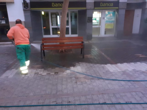 El Ayuntamiento de La Aldea de San Nicolás intensifica estos días la limpieza y desinfección de los espacios y mobiliario públicos.