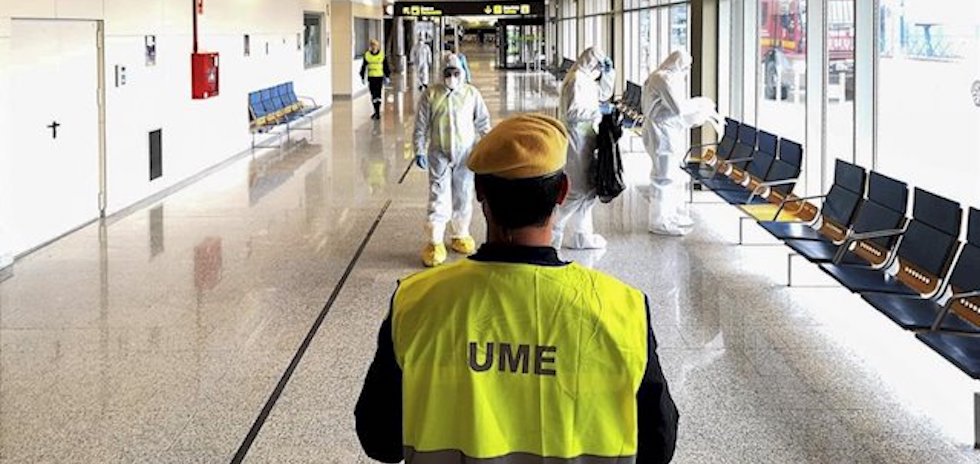 En el control de seguridad la Unidad Militar de Emergencia (UME) realiza desinfección de todos los elementos, bandejas, mesas y barandillas, y en el aeropuerto se encuentran desplegados agentes de la Guardia Civil y demás cuerpos de seguridad, que velan por el cumplimiento del protocolo establecido por Sanidad.