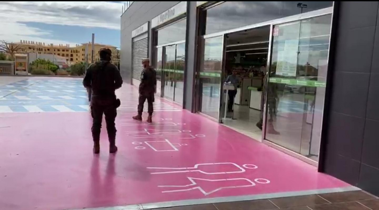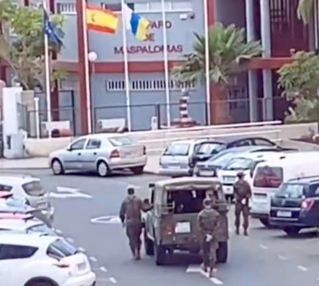 Una decena de militares se han desplegado este domingo por diferentes calles y zonas de San Fernando Maspalomas.