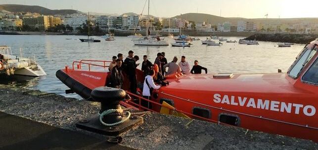 Un grupo de 49 inmigrantes subsaharianos, entre los que puede haber 12 menores, llegó esta madrugada al muelle grancanario de Arguinegín, después de que fueran rescatados por la embarcación de Salvamento Marítimo Guardarmar Talia de un cayuco a cinco millas al sur de la isla.