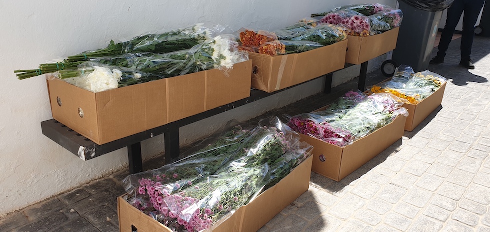 Una empresa de flores trajo varias cajas de flores que serán colocadas en las diferentes tumbas y nichos por los operarios municipales.