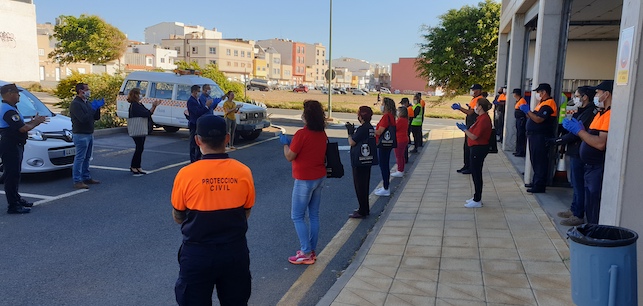 El gobierno municipal ha querido reconocer públicamente este jueves el trabajo que están realizado voluntarios y voluntarias de Protección Civil y el personal de diferentes centros de Servicios Sociales, con acciones como el reparto de mascarillas o de material escolar para los niños y niñas de las escuelas infantiles.