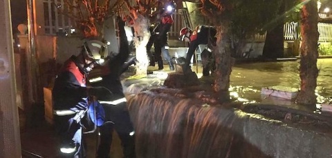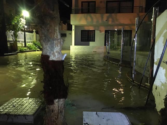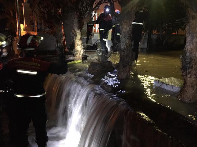 Los Bomberos de Maspalomas tuvieron que intervenir y romper los muros que perimetran los apartamentos para que saliera el agua hacia la calle y la playa, han informado a Maspalomas Ahora.