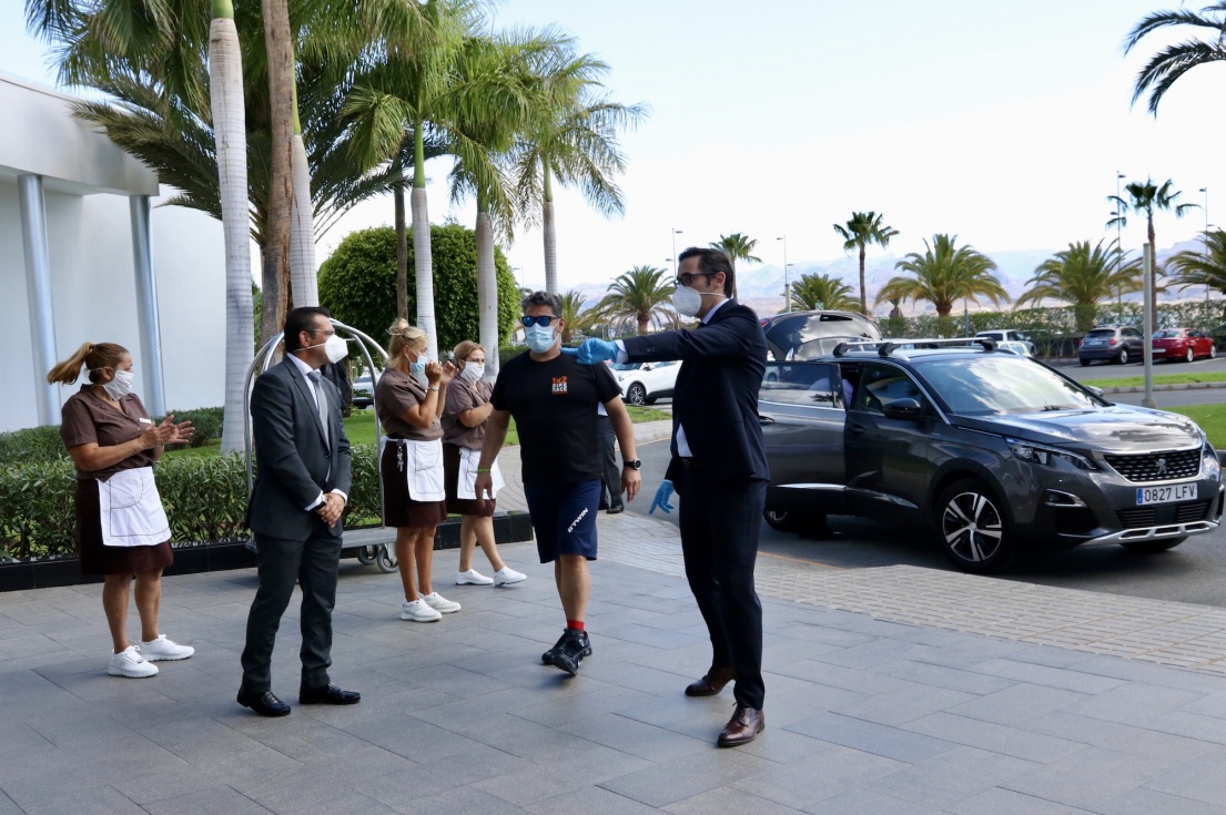El hotel RIU Gran Canaria fue el último hotel que cerró tras la declaración del estado de alarma, el día 23 de marzo, y hoy se ha puesto en marcha con "el cliente local y fiel" a la cadena.