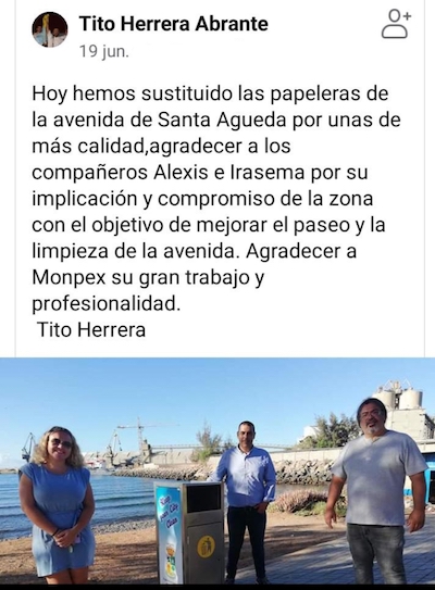 Tantos concejales en una foto para unas cuantas papeleras y al menos dos de ellos deberían conocer un poquito de la historia de su pueblo, así como las necesidades y opiniones reales de sus vecinos, que vuelven a ver como se repite la historia. Aunque también puede ser que el exceso de trabajo los tenga saturados así que les trasladamos otras de las quejas de sus conciudadanos: los fines de semana El Pajar se ha convertido en el pueblo sin ley, no hay presencia policial, la gente no guarda las distancias en la playa, motos acuáticas y embarcaciones se acercan a la orilla poniendo en peligro a bañistas, la gente aparca y amontona los coches a sus anchas, y así un largo etcétera.