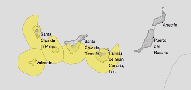 Por su parte, las alertas se han activado desde las 10.00 horas (desde las 15.00 en Tenerife y desde las 18.00 en La Palma) y se mantendrán hasta las 23.00 horas, aunque continuarán previsiblemente hasta este domingo.