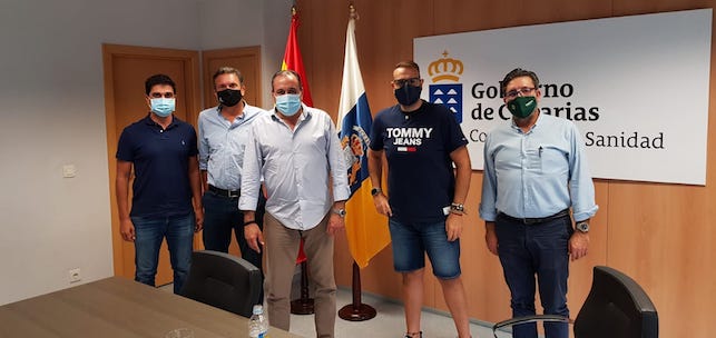 La Asociación de Ocio Nocturno y la Federación de Empresarios de Hostelería y Turismo (FEHT) se ha reunido este martes con el consejero de Sanidad del Gobierno de Canarias, Blas Trujillo, en la que ha valora do positivamente las medidas adoptadas para la reapertura de los negocios del gremio en la desescalada. En la reunión estuvo presente el vicepresidente de la Asociacion de Empresarios de Bares, Cafeterias, Restaurantes y Ocio Nocturno de la FEHT, Antonio Márquez, entidad que colabora con la referida asociación de ocio nocturno.