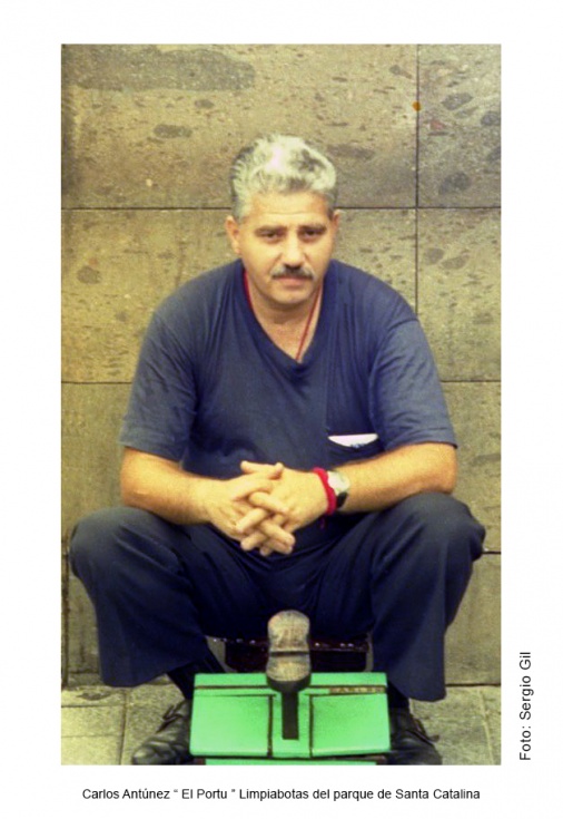 Así pronto se vio de navegante en tierra, de peón de paletas al ajuste en una sexta planta de un hotel en construcción en la Playa del Inglés, pero desengañado de currelar por cuenta ajena no tardó en establecerse como autónomo en una actividad que requería una inversión muy modesta al alcance de cualquier humilde industrial emancipado. Por cuatro perras mercó a una viuda una caja y el taburete de limpiabotas, pintados de verde y en una ferretería de la calle Naval, un equipo modesto de cepillos, bayetas, betunes de negro y color, crema abrillantadora y se asentó a la pesca del zapato en el Parque de Santa Catalina, uno más de los quizá 50 que pasaron por el Parque de los años 70 a los 80.