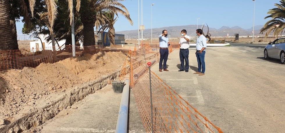 A finales del mes de octubre podrían estar terminadas las obras de mejora de la red de saneamiento de Pozo Izquierdo, en el tramo que une la estación de impulsión de Las Bajas con la estación de la calle Tanque Redondo. Así lo anunció este viernes el alcalde de Santa Lucía, Santiago Rodríguez, tras una visita que hizo a las obras acompañado del concejal de Obras Públicas, Francisco García y el edil de Mantenimiento, Marcos Rufo.