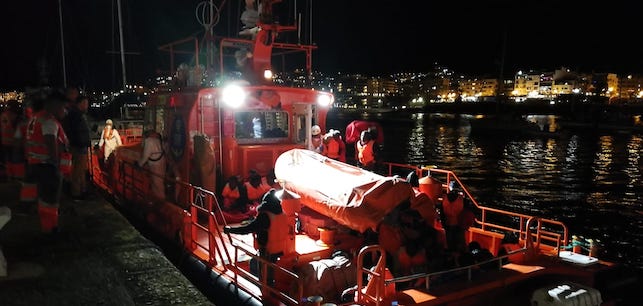 Una primera embarcación, detectada por el Sistema Integral de Vigilancia Exterior (SIVE) a 5 millas al sur del faro de Maspalomas, transportaba a 24 hombres que fueron trasladados por la "Guardamar Talía" al muelle de Arguineguín, al suroeste de la isla, donde desembarcaron pasada la medianoche.