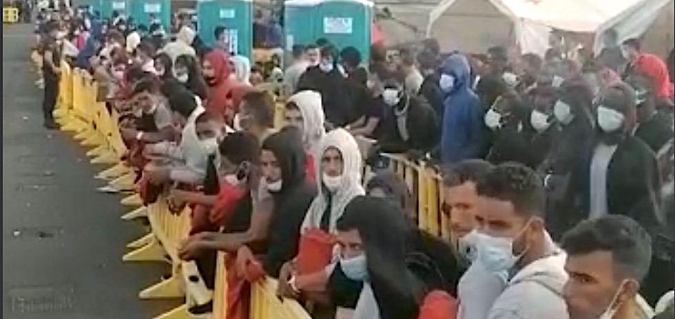 Pero el vídeo (de un autor anónimo) deja tras de sí a cientos de magrebíes y subsaharianos, en cola ante el paso de los vehículos especializados, con los rostros extraviados, tratando de que el tiempo juegue a su favor una vez que superen las pruebas de coronavirus y puedan ser realojados en centros especializados o en complejos turísticos.