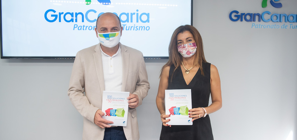 El consejero de Turismo del Cabildo de Gran Canaria, Carlos Álamo, y Teresa Aguiar Quintana, directora del proyecto editorial -además de doctora en Ciencias Económicas y Empresariales e investigadora en el campo del Turismo- presentaron este miércoles el libro ‘100 soluciones a 50 problemas para la gestión turística de empresas en Iberoamérica: Manual de casos reales’; un estudio que cuenta con la colaboración del Patronato de Turismo, en el que participan profesores de la Universidad de Las Palmas de Gran Canaria (ULPGC), de la Universidad de la Laguna (ULL) y de varias universidades de Iberoamérica y en el cual se incluyen casos prácticos de empresas de Gran Canaria, España, Portugal y Latinoamérica.
