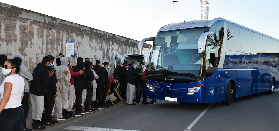 Cerca de 200 inmigrantes marroquíes que estaban en el muelle de Arguineguín han sido conducidos por la Policía este martes fuera del campamento de la Cruz Roja y trasladados en autobuses dispuestos por el Ayuntamiento de Mogán a Las Palmas de Gran Canaria sin un recurso de acogida.