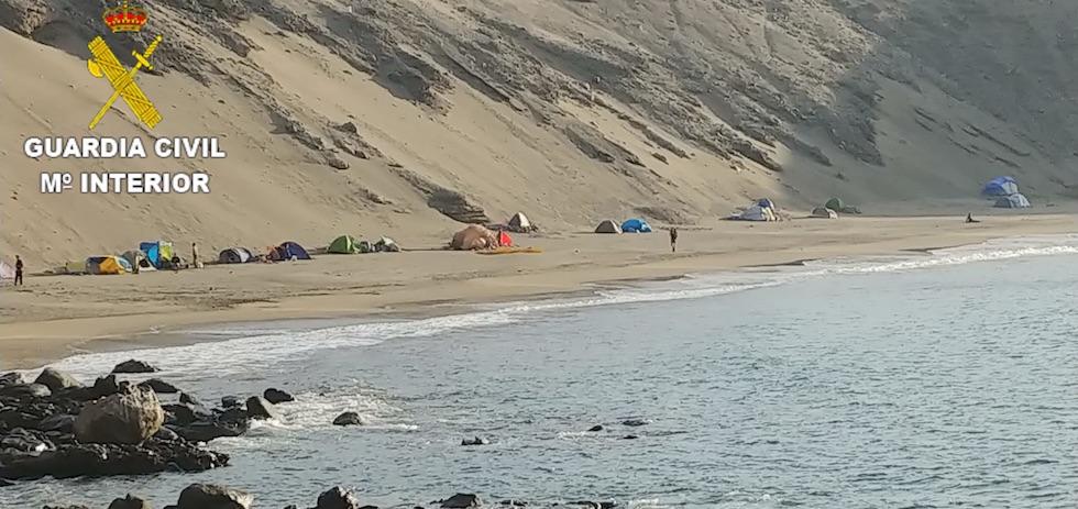Estas denuncias se realizaron después de que agentes de la Guardia Civil, dentro de la competencia encomendada en la vigilancia de costas, observó que en dicha playa había instaladas un gran número de tiendas de campaña donde los ocupantes, en su gran mayoría, no eran convivientes y no respetaban las distancias de seguridad ni el uso de las mascarillas.