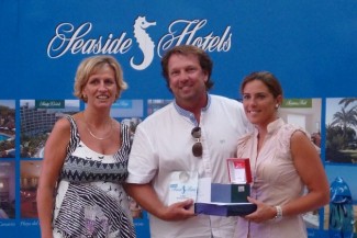 La entrega de premios y la entrega del cheque a la obra San Juan de Dios se celebró la noche del sábado en el Seaside Palm Beach*****, con la asistencia de más de 150 personas. Astrid van Wijk, directora comercial de Seaside Hotels, María Ley – gerente de Maspalomas Golf y Fran Pérez de Canarias Sport & Golf fueron los encargados de entregar los premios a los diferentes ganadores de esta IX edición del torneo Benéfico Seaside Hotels. Posteriormente, se ofreció un magnífico cóctel en el Bar Africano, junto a la piscina y bajo el  impresionante palmeral donde se ubica el hotel en la que los participantes e invitados intercambiaron impresiones sobre  el Torneo Benéfico.