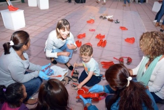 El Ayuntamiento de San Bartolomé de Tirajana organizó este jueves en la pequeña Plaza del Camellero dos talleres participativos destinados al pintado de zapatos rojos y al serigrafiado de camisetas para jóvenes, destinados a concienciar a la población sobre la necesidad de acabar con la violencia hacia las mujeres.