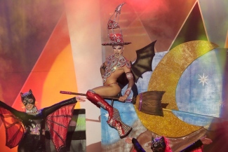 La superproducción de la Gala Drag, patrocinada por Fund Grube, abrió con una magnífica obertura en la que intervinieron más de 150 actores dirigidos por Conchy Rodríguez, los cuales escenificaron grandes momentos de las películas más taquilleras del cine producido en Hollywood.