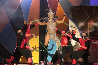 Mientras fue designado a Drag Orión como Segundo Clasificado, con la fantasía “En son de paz”, con un diseño de Sebastián Betancor y Jorge Pérez, en representación de Perfumería Sabina.
