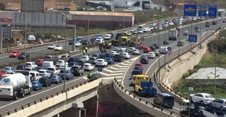 Poco más de una hora más tarde, sobre las 15.15 horas, a la altura de Melenara en dirección norte también hubo otro vuelco que provocó retenciones y con un herido leve.