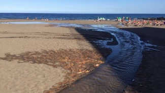 Una riada ha sorprendido este sábado a los usuarios de la playa de San Agustín, en el municipio grancanario de San Bartolomé de Tirajana. Sin que hubiera llovido, este hilo de agua apareció de pronto en la arena ocasionando malestar debido "al mal olor generado", según han comentado algunas personas que se encontraban allí presentes.