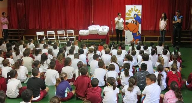 Un total de 150 alumnos del Colegio de Educación Infantil y Primaria La Cerruda han recibido este miércoles los carnets de ‘Policía Infantil’, camisetas y marcadores de libros con la imagen de Gofiote, mascota de la Policía Local de Santa Lucía, después de haber seguido el curso de Educación Vial, que impartieron los agentes de la Policía de Barrio bajo la coordinación la Oficina de Seguridad Pública, de la Concejalía de Seguridad Pública del Ayuntamiento.