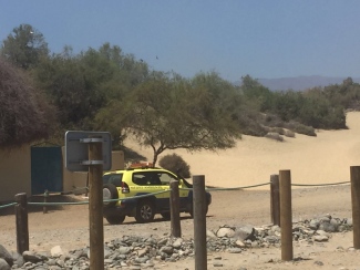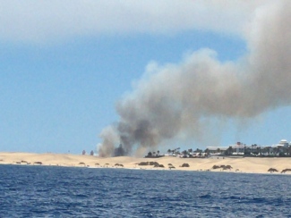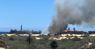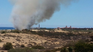 La larga columna de humo que originó el fuego producido cerca de la zona nudista de la playa fue visible desde casi todos los puntos de la zona turística de Maspalomas, lo que despertó el interés de turistas y residentes de la zona.