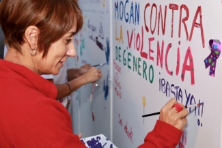 “No más víctimas”, “Si duele no es amor”, “Si me quieres, quiéreme bien” o “hay salida”, son algunas de las frases que han quedado plasmadas en el mural “0 Violencia” y las camisetas que han pintado adultos y niños durante toda una tarde en la Plaza de las Marañuelas de Arguineguín. Además, los asistentes también pudieron crear chapas personalizadas en el taller 'Crea y decora tu lazo violeta'.
