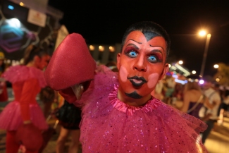 Curas, gladiadores, senadores romanos, muchos hippies, conejos y conejas, payasos, médicos y enfermeras, marineros, y trajes de época se unieron a la gran serpiente multicolor.