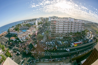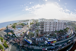 Los turistas ocuparon las aceras de la avenida de Italia, por donde discurrió el primer tramo antes de doblar la Avenida de Gran Canaria, quienes ademas, se amontonaron en sus balcones para presenciar las mejores panorámica.