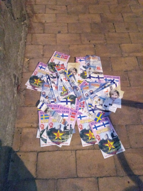 Y así cada día. Colocan publicidad engañosa en zonas prohibidas, rompen la imagen de lugares públicos turísticos, en definitiva ensucian las calles con más porquerías. Llevamos años denunciando esa práctica que nos transmiten vecinos y empresarios, y de muy difícil erradiación o falta de medios.