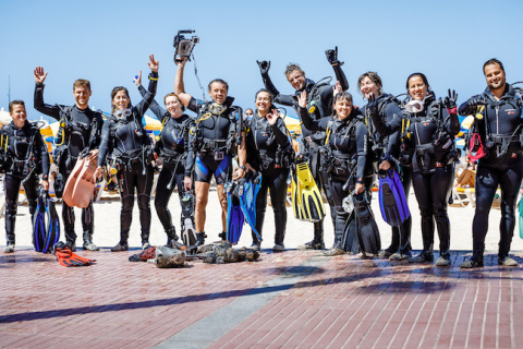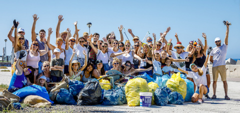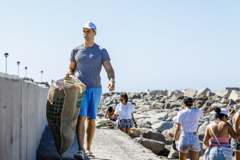 Un grupo de 80 personas del equipo de TOTEM, de Cirque du Soleil, han realizado recientemente una limpieza del fondo marino y alrededores de la playa de Amadores en el que recogieron multitud de plásticos y residuos.