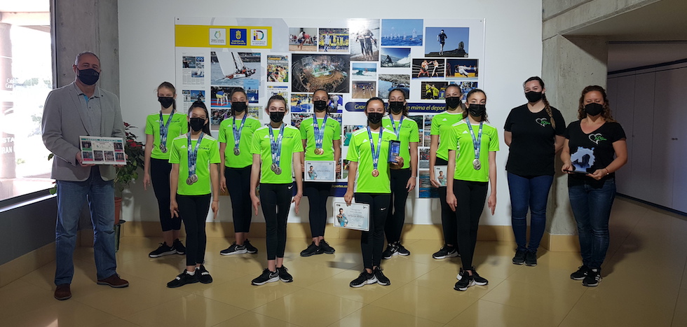 El consejero de Deportes del Cabildo de Gran Canaria, Francisco Castellano, recibió a las subcampeonas del Campeonato Nacional Base de Conjuntos de Gimnasia Rítmica, a la campeona de España individual en la final de pelota, y la medalla de bronce en la final de pelota por equipos en la máxima categoría, que se celebró el pasado mes de marzo en el Centro de Alto Rendimiento Colonial de Valencia.