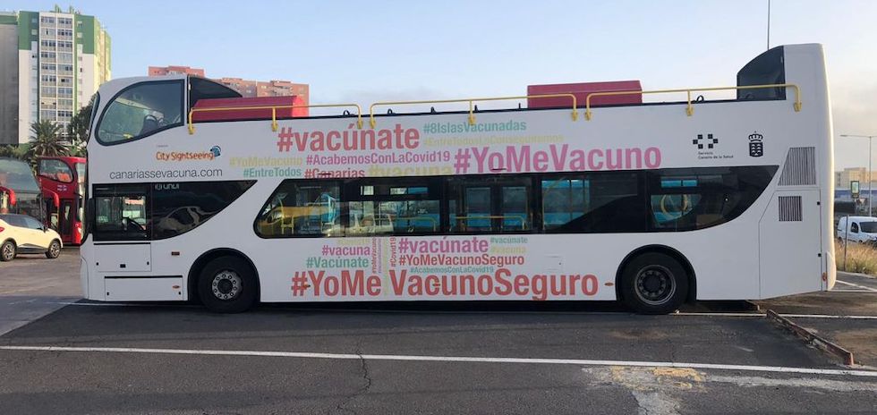 La Consejería de Sanidad del Gobierno de Canarias, en colaboración con la empresa CitySightseeing de Las Palmas de Gran Canaria, pone en marcha esta semana dos guaguas turísticas que recorrerán Gran Canaria y Tenerife administrando dosis de la vacuna contra la COVID-19 a personas de 12 años (ya cumplidos) o más que no hayan recibido ninguna vacuna contra el coronavirus.