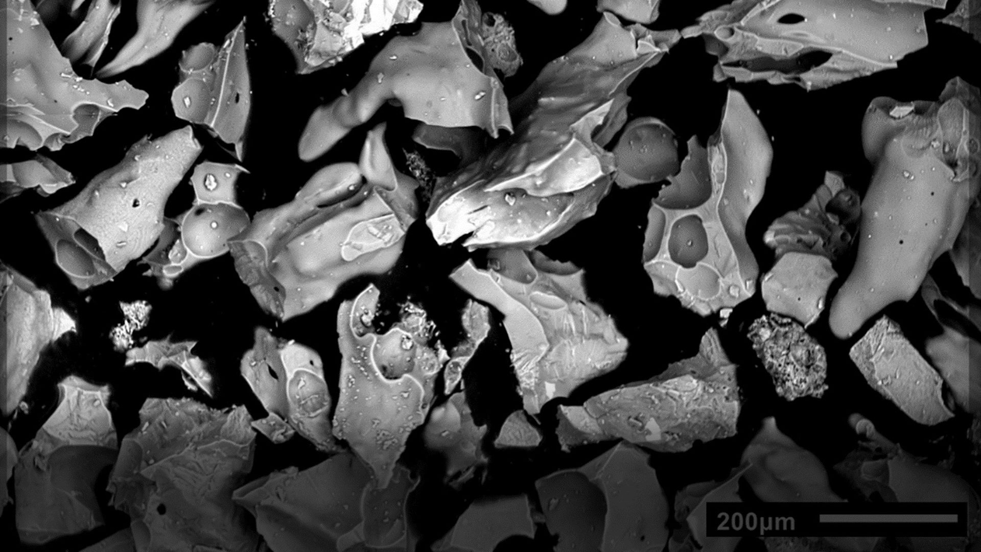 Fotografía de microscopio electrónico de barrido donde se observa la morfología de detalle de las partículas de cenizas expulsadas el primer día de la erupción. IGME - CSIC