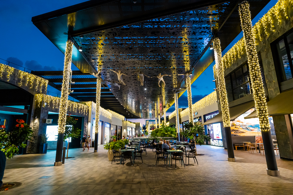 El centro comercial presenta la decoración con unos estanciales muy originales, además de un Belénde Navidad tradicional con arena, recordando el mejor clima de la isla.