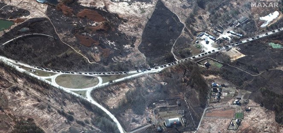 Un largo convoy militar ruso en las afueras de Kiev, que había sido detectado recientemente por imágenes satelitales es más grande de lo que se había pensado inicialmente, informó la agencia UNIAN. Según las imágenes satelitales de Maxar Technologies, que informa regularmente sobre la situación militar en Rusia, la columna alcanza los 64 kilómetros y consiste en carros blindados, artillería y otros vehículos.