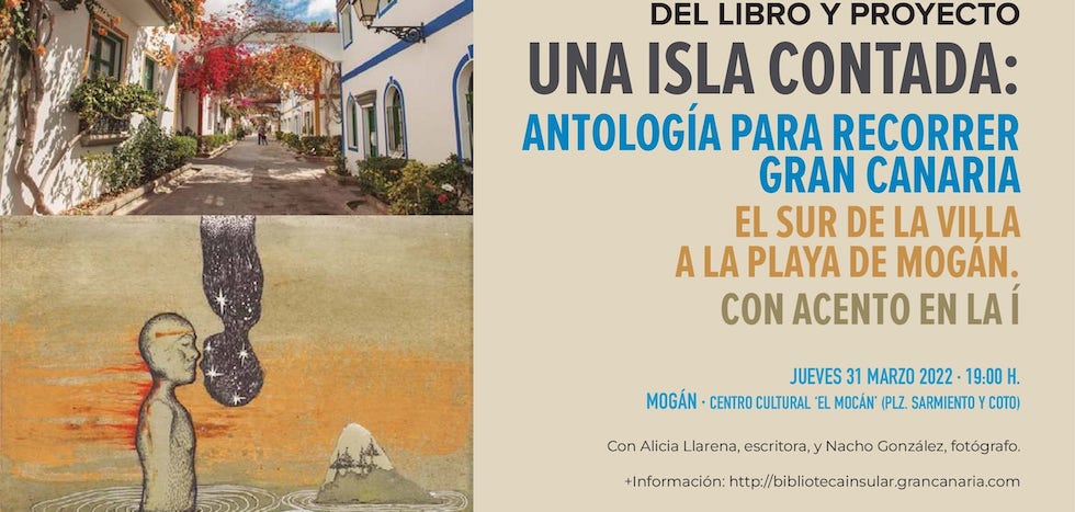 El Centro Cultural El Mocán acogerá el próximo jueves 31 de marzo la presentación de 'Una isla contada. Antología para recorrer Gran Canaria', proyecto impulsado por el Cabildo de Gran Canaria que invita a conocer la isla a través de la creatividad literaria, la ilustración y la fotografía reuniendo en un libro los relatos de una decena de escritores y escritoras. En Mogán, la autora natural del municipio Alicia Llarena y el fotógrafo Nacho González ahondarán en el apartado 'El Sur. De la Villa a la playa de Mogán'.