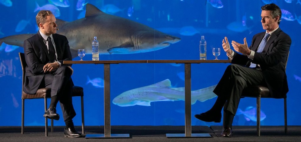 El encuentro entre Daniel Lacalle y José Manuel Soria ha sido un acto organizado por el Club Tiempo de Canarias y que contó con el patrocinio de Tressis, Satocan, Servatur, IOC, Philip Morris International (PMI), Icot, Avericum, Grant Thorton, Hospitales Universitarios San Roque y Poema del Mar Aquarium.