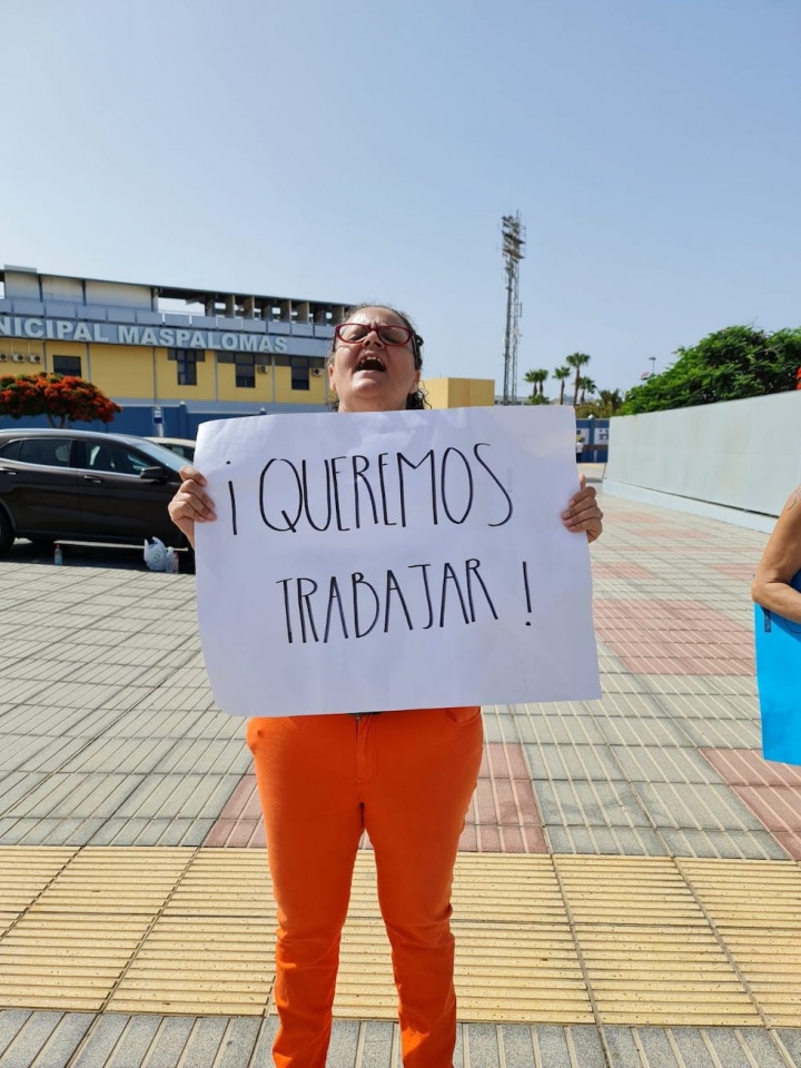 Los trabajadores de los chiringuitos de Playa del Inglés, Maspalomas y el Faro de Maspalomas han protagonizado este jueves, frente a las Oficinas Municipales de San Fernando de Maspalomas, la segunda jornada de protestas para pedir la adjudicación inmediata del servicio, tal y como adelantó ayer Maspaomas Ahora.