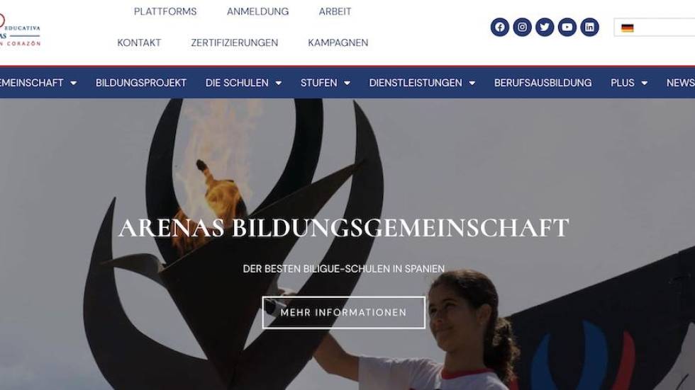 La página web de la Comunidad Educativa Arenas (CEA), hasta ahora en español e inglés, ha dado un paso más en la mejora de sus servicios de comunicación. Entre los últimos destaca que ofrece ya la mayor parte de sus contenidos también en alemán.