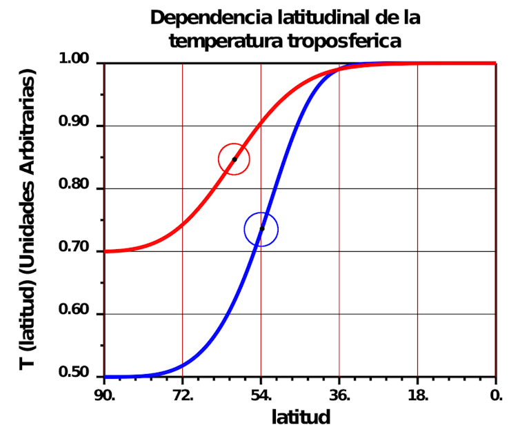 Posición del chorro polar (círculos). Tomada de 'Quemando el futuro', de A. Ruiz de Elvira., Author provided