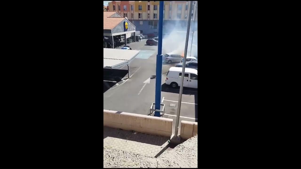 Un coche se incendia en el aparcamiento de un supermercado en Vecindario
