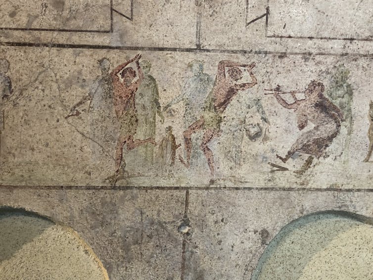 Autores antiguos como Catulo y Apuleyo hacen referencia a festividades en las que seguidores y seguidoras de Dioniso, Demeter, Cibeles y otras muchas divinidades de origen oriental, cuyos cultos se habían ido introduciendo en Roma, danzaban formando un cortejo al son de instrumentos musicales como las flautas, las siringas, los tímpanos, los crótalos y los címbalos, entre otros.